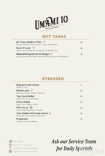 Umami 10 (新加坡) 網上訂座即賺Rice Dollars 網址: https://s.openrice.com/eKbSB01jhG200 地址: 163 Telok Ayer Street, Raffles Place, Singapore 電話: +65 6513 5789