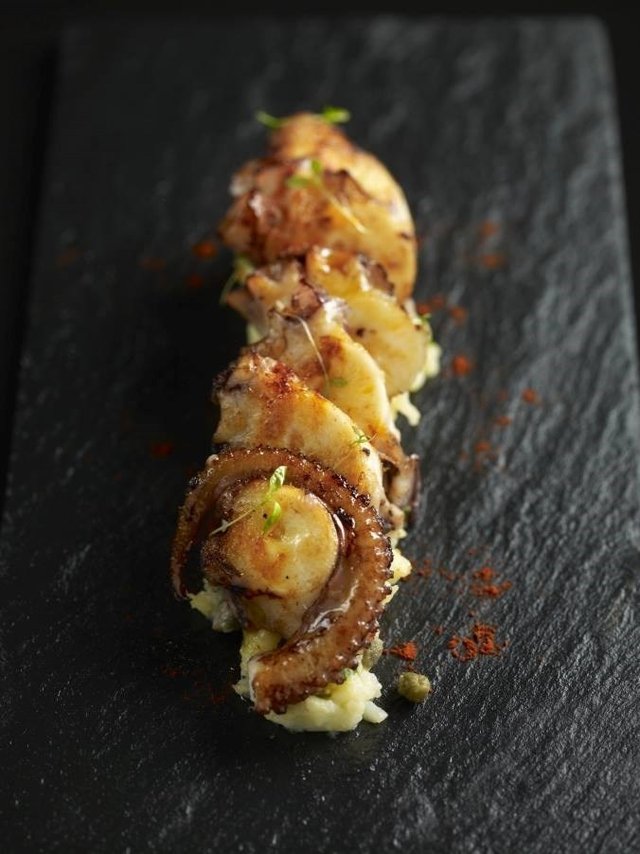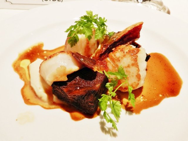 Scallops A La Plancha, Veal Cheeks, Iberico Ham Crisp