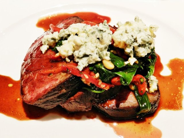 Wagyu Sirloin, Pequilo Peppers, Roquefort
