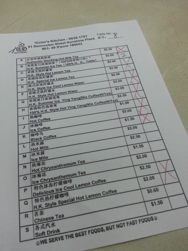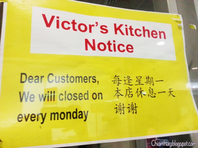 Feel free to visit my site: http://thedessertprince.com/victors-kitchen-the-impression-of-a-boss/Impression has always been one of those guiding principles in life. For most of the time, impression may just play that decisive factor in the decisions you might made to maneuver your way. For instant, you would gauge a stranger based on the first impression you had of that newcomer before you could say “hey so and so, shall we be friends?”So what about the impression of a boss when he have his Dim Sum fare? It’s not about having a table full of baskets each containing different food at a fanciful hotel setting. Although that could always be appreciated. Anyone could dress like a boss but not everyone could behave like one that’s for sure.At Victor’s Kitchen however, you will be considered a boss if you could converse with the ladyboss helming the counter in her native language, Cantonese. Yeah, as thick-skin as I have always been, I’m actually referring to myself!You see, I have Cantonese blood running within my cake-cloted arteries. The language was and still is my first language. I still conversed with the older generation in Cantonese and many seemed amazed that I could even keep the conversation on-going. Amazed because somehow my generation have given up their true mother tongue and many don’t even try picking up the language. Such a pity if you have to ask me…I had a good laugh when I saw their menu which came in slips of order form. We ordered two bowls of porridge. One was called Phoenix Porridge ($3.50) while the other, Nemo’s Porridge ($3.50). In the Dim Sum world, phoenix is just a nice way of saying chicken but nemo? I have never heard of anyone naming their dish after a clown fish!Victor’s King Prawn Dumplings ($4.50) are anything but ordinary. They might not look set to impress the crowd but it speaks clearly in the taste. The prawns were exceptionally huge compared to most restaurants and siding more all the juicy and crunchy side too! A must-have if you ever drop by the kitchen.Another must have for Dim Sum at Victor, Tasty Queen Size Siew Mai ($4.00). Again looks can be deceiving. Just because it’s not well plated means it won’t taste as good. I am just happy to pay $1 for each yellow cuboid meat dumplings.Indeed one of our friend would consider this yummy. Phoenix Claws ($3.00). Personally, I didn’t really liked how the talons were prepared. Everything about this dish was good apart from the sauce that it was left simmering in. Just not flavorful for me.Sometimes I wonder how could a Chinese survive without pork in their lives. I mean I have pork for almost every meal I had and Dim Sum is no exception. The Steam Spare Ribs with Black Bean Sauce ($3.00) again is a must-have dish although, those chopped red chili just spiced everything up. I shall remind the staffs not to add them the next time I’m coming here for Dim Sum.Victor’s signature Dim Sum. The highly revered Golden Egg Yolk Lava Bun ($4.00) or in my own dialect, Lau Sha Pau. The white bun was light and fluffy but that’s the main point. The yellow liquid that flowed out was nothing short of Oomph factor.Extremely savory with a strong hinge of Salted Egg Yolk amidst the buttery creamy custard. We love their little buns so much that we didn’t just order one basket. We couldn’t settle for two and we ended up getting a third! That’s nine lava buns in total! Just like a boss!Liu Sha Pau is the Chinese equivalent of the molten Chocolate Lava Cake. We spend $40.30 for a table full of food for four people. (They don’t charge GST or Service Charge.) I thought it was quite a fair deal considering we ordered a lot. There were a few that I didn’t managed to take a shot so I omitted them out.The food may fall short of glamorous compared to other popular Dim Sum restaurants.But for the quality that the Chef invest in is the reason why the kitchen is often found packed with people craving for their light hearted snacks which we call Dim Sum.Instead of conversing in Chinese, how about placing your orders in Cantonese? Afterall, you’re dealing with a lady boss from Hong Kong. That’s how I ended up with the impression of a boss……查看更多
