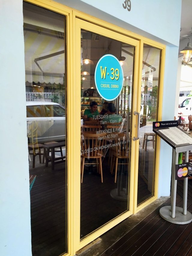 As adapted from their website, W39 believes that good food is the foundation of genuine happiness. Therefore, its menu consists of a wide variety of dishes from breakfasts (only on weekends) to local delights and even their well-known rainbow cake. The cafe also houses a small bakery that sells homemade bread and also offers various knick-knacks from yesteryear that are bound to ignite a nostalgic spark in one.As adapted from their website, W39 believes that good food is the foundation of genuine happiness. Therefore, its menu consists of a wide variety of dishes from breakfasts (only on weekends) to local delights and even their well-known rainbow cake. The cafe also houses a small bakery that sells homemade bread and also offers various knick-knacks from yesteryear that are bound to ignite a nostalgic spark in one. Brunch Menu is only available from Weekends and PH from 9am-3pm Cafe Interior Communal Seating Selection of cakes Selection of bread Brunch MenuWe had: Hearty Breakfast - $16 (Your choice of eggs, sauteed mushrooms, bacon, pork sausage, tomato and slices of their very own Butter Top Loaf (available for sale at their Bread Counter))For $16, this platter was definitely value for money. The scrambled eggs were delicious though they were a little dry. The pork sausage was seasoned well and the bacon too, was well-prepared. Thumbs up to their homemade Butter Loaf as well! Eggs Benedict - $10(Poached eggs with pork ham and Hollandaise sauce on their Butter Top Load and served with Mesclun salad) Look at the perfectly poached eggs! The only downside of this dish was just that the hollandaise sauce was a little too salty on its own. Fluffy Pancakes - $10(3 pieces, served with fresh assorted fruits, butter, jam and maple syrup)One of the fluffiest pancakes I've eaten for only $10! The portion was really huge, so I would recommend this for sharing instead. The batter was a little disappointing as I felt that it could have been more flavorful. Service:I had no qualms about their service, and the food was served to us rather quickly!Atmosphere:The cafe had tons of natural light streaming in that made taking photos really fuss free (I didn't even have to edit much of the photos here!!). The interior is also spacious with a huge communal table in the center and individual seating at the sides. Oh! For pet owners, you can also bring your pets there as well as there're plenty of outdoor seating available!Atmosphere: 8/10Price: 8/10Food: 7/10Service: 7/10…查看更多