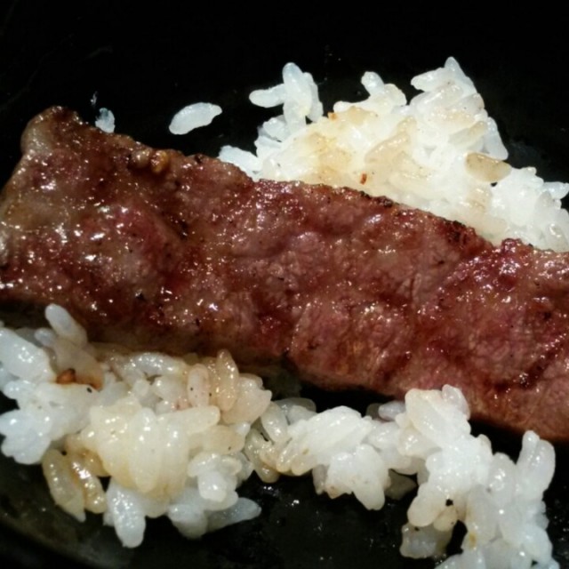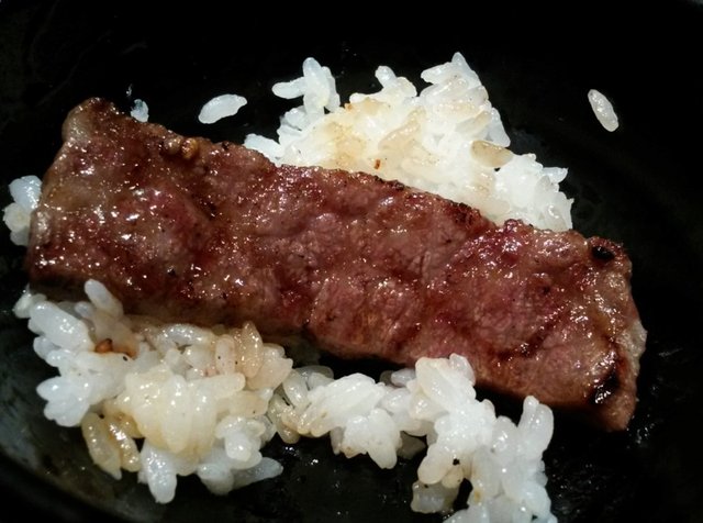 Grilled Black Wagyu Sasami Flank Steak with quality Japanese rice.