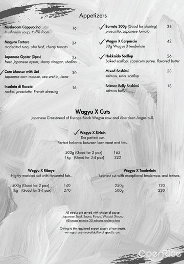 Not just another steakhouse, Wagyu X prides itself in serving up a new Hokkaido special Wagyu crossbreed not commonly found outside Japan. After traversing Japan, Chef-owner Masahisa Takada stumbled upon a Hokkaido breed that is bred from the crossing of Kuroge black Wagyu cow and Aberdeen Angus bull, offering the distinctive marbling of A5 Wagyu and the robust flavour profile of Angus beef, delivering a luxurious texture that is neither too fatty nor too meaty with the perfect balanced flavour.