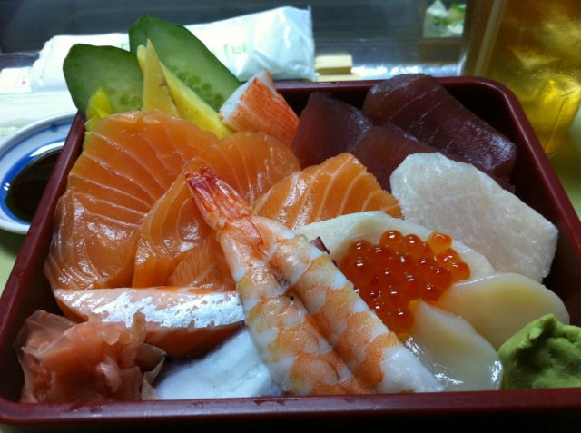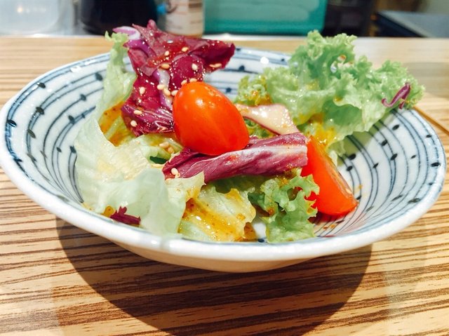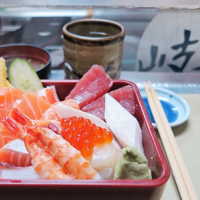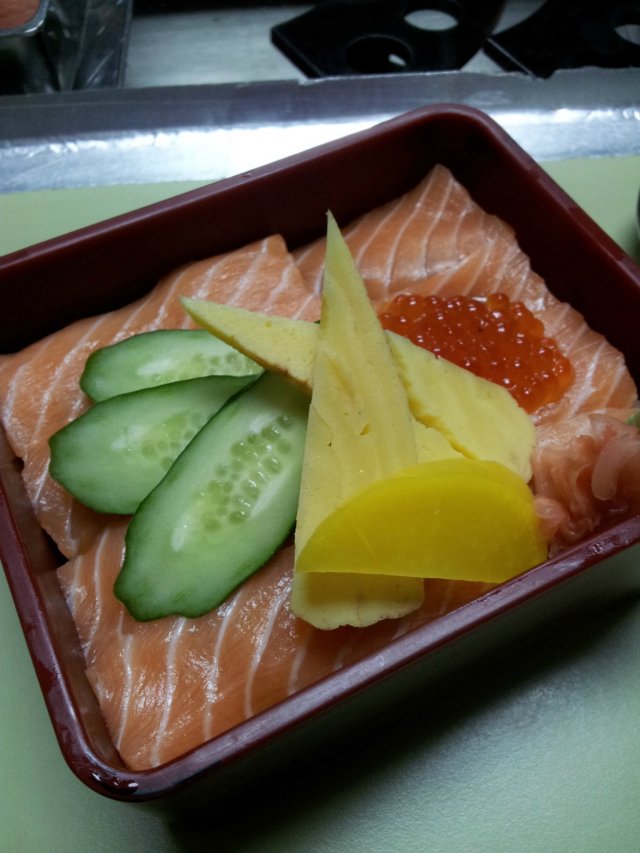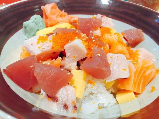 A tiny little Japanese restaurant that is located just in front of the lift at the 5th floor. There is only about 15 counter seats available. So everyone could have a good view of the chef making sushi in front of you while eating. Only cash payment is accepted here. There is no GST or service charge.Looking around at what everyone was having, I decided to go with the crowd and had one of the lunch set.Lunch Donburi Set C : Kaisen Chirashi Set ($18)It was served with Japanese green tea, miso soup, salad, pickles, and cut watermelon slices.It was colorful in presentation. The sashimi was smooth on the texture. The salad was lightly dressed with soyu dressing. Nice ending the simple meal with juicy sweet watermelon.Although the place was packed, it gave a cozy feel. Tea was refilled without asking for. Service was smooth.…查看更多