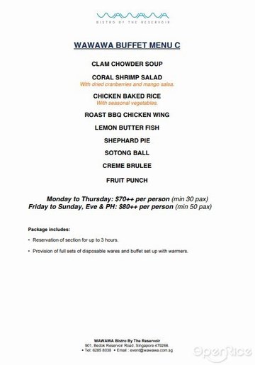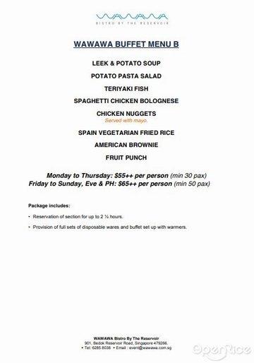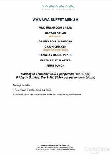 WaWaWa is a full-service restaurant/café located in the sculpture garden in Bedok Reservoir Park, Singapore. The restaurant features a full menu of moderately priced “comfort” food influenced by German cooking traditions. The café section features a coffeehouse with a dessert bar, magazines, and space for live performers.
