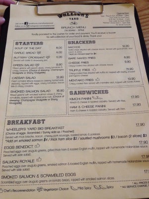 Wheeler's Yard needs little introduction. Boss and cycling enthusiast Tommy Ong turned his family's old warehouse into a bicycle workshop and cafe back in September 2013.Ambience at Wheeler's Yard cafe is laid-back and rustic, with a retro and bicycle themed decor. Long, sturdy, communal wooden tables are surrounded by an eclectic mix of retro / nostalgic chairs. Magazines and music boxes are set on the tables, beside bicycle parts or whole bicycles. The counter is surrounded by old-school / olden items such as biscuit tins, while the rough brick wall is adorned with bicycle frames. Very photo-worthy, visually exciting and appealing. Also makes the place great for chilling!Even the surrounding area has interesting spots. The workshop has bicycle / cycling related products and items of interest, the yard behind has their trailer and a lush green hedge wall, the front has the iconic Wheeler's Yard blue door. They even have benches that double as a waiting area should the cafe be crowded!Service at Wheeler's Yard is partial self-service. Ordering and payment is done over the counter, as is collection of order, but if you're lucky and the cafe isn't crowded, staff may serve orders to your table. Otherwise, everything is self-service. Staff are friendly and can engage if necessary, though mostly they hang around in the background. The menu has apt descriptions of dishes, so you won't even need to ask them questions. Very minimal interaction, little service required, hence, they practise tipping here.Food at Wheeler's Yard is mostly Western style, influenced by American, British, and Italian cuisine, with some Asian influence as well, such as Indonesian, Chinese, or Singaporean. Generally, taste of food here is decent to above average, but nothing so special that you should go out of your way for. Portions are large, and can be shared. Prices at Wheeler's Yard are typical of a high-end cafe, budget about SGD $32 per person for a meal here.The Hot Chocolate (SGD $6) here is among the better ones I've had, rich and deep with pronounced chocolate flavour. Warm and comforting, yet not too sweet. Love the little retro gem biscuits on the side!The Or Lu Lu Sotong (SGD $16.90) features large chunks of fresh calamari squid, coated in a thin, crisp Asian spice and flour batter, and served in a thick, dark, sweet Indonesian kecap manis / black sweet soy sauce, and spring onions. Portion is large enough to share. I really enjoyed this, would order again!The Salmon Royale (SGD $18.90) has 2 lovely poached eggs over arugula / wild rocket leaves, large slices of smoked salmon, all on nicely toasted English muffins. Cut into the eggs and watch the yolk ooze out! Decent enough as a dish, and I like the home made Hollandaise sauce, which is thick and creamy. I also thought the touch of adding sweet slices of peach to the salad on the side is a good idea!Full Wheeler's Yard review here: http://ivanteh-runningman.blogspot.sg/2015/10/wheelers-yard.html…查看更多