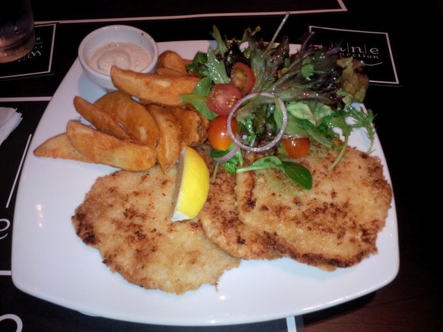 I returned to HillV2 again in the evening, this time with The Beau, for dinner, since he resides nearby. I wanted to have dinner at Wine Connection Bistro because the menu looked good, and I felt like some wine. There was a queue when we were there - not because it was that crowded inside really (because I did walk in to survey). The service was very slow and inefficient - clearing tables took ages, and there were many empty tables strewn around.For mains, The Beau had the Pork Schnitzel (SGD$20.00) - thinly pounded breaded pork cutlets fried till golden brown, served with potato wedges and fresh greens on the side - oh and dill sauce as well. I rather liked the thin strips of pork, lean in capacity and slightly crispy because of its breaded coating. The wedges were delicious as well - crispy and fresh. The Beau thought that the pork slices were too thin and not crispy enough though.I had the Pesto Pasta (SGD$11.00) - pesto sauce cooked with thick spaghetti strands tossed with thin Mozarella slices. The noodles were rather springy but there wasn't much to it except for the cheese flakes, hence I had to pair it with some pork schnitzel and plenty of chilli flakes / Tobasco sauce. I do like the tiny portion though, just nice for someone like me trying to cut back on carbs.For full review and more photographs, please feel free to visit:http://thearcticstar.blogspot.sg/2014/10/dinner-at-wine-connection-bistro-hillv2.html…查看更多
