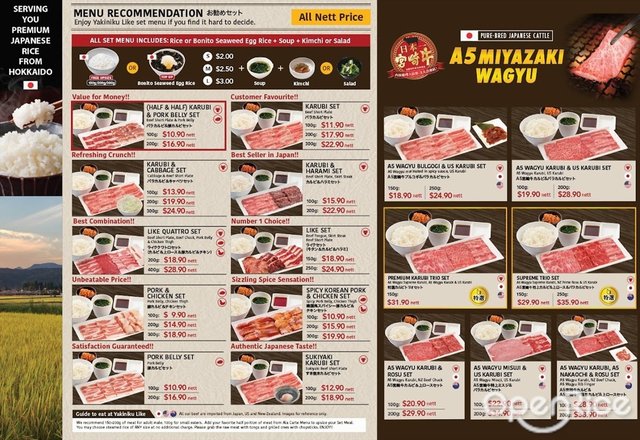 Yakiniku Like (新加坡) 網址: https://s.openrice.com/eKbSB01J6q200 地址: PLQ Mall, 10 Paya Lebar Road #B1-28., Paya Lebar, Singapore 電話: +65 6970 7397