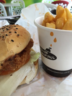 I saw the newspaper that this Yellow Submarine was opened by Mediacorp's 陈澍城. So when I was in Toa Payoh Hub, I was curious and went to have a try. I ordered the all time favourite on their menu, Yellow Submarine Classic Set at $9.90, with drinks and cheesy fries. The price was slightly high for a fastfood set meal.The Cheesy Fries smelt of heavy cheddar cheese. The cheese sauce texture was ooey gooey, when I dipped the crispy French Fries into the cheese sauce, the taste was very yummy.The beef baguette was also spam with the same cheese sauce. The filling inside seem like stir fried beef with onions. The combination of cheese sauce, beef and onions made me think of Vietnamese Bánh Mì. I liked the overall tasted, it was quite oriental. I think the beef baguette would be better if there was fresh green lettuce.…查看更多