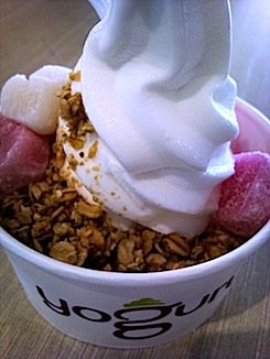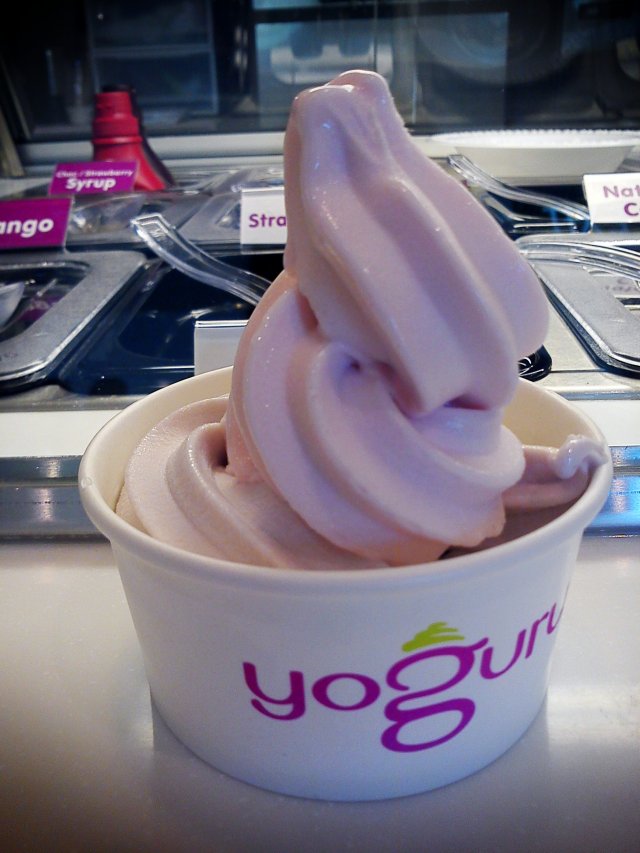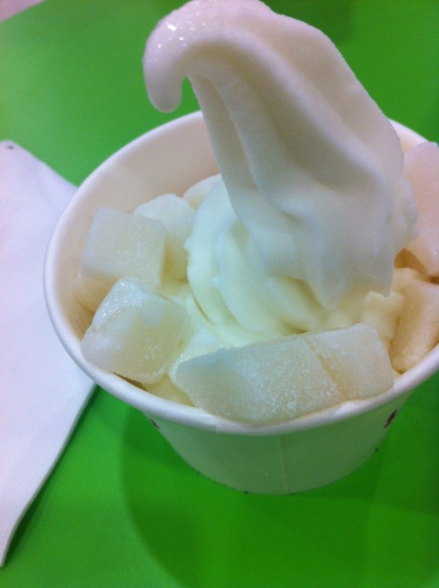 A real fan of ice cream and all treats frozen, frozen yogurt tops my list of frozen desserts because of its low fat and calorie content, as well as its customisability. Everytime I'm in the vicinity, I'll stop by for Yoguru's frozen yogurt. It's been in the market for a good few years now, and I've been religiously eating their froyo since 5 years back.Initially drawn to their yogurt because of the enticing 0% fat, I was hooked on it because it was so smooth and creamy. Sheer delight in one's mouth, every spoonful of froyo is delightfully sweet with a slightly tangy aftertaste. The yogurt isn't sickeningly sweet nor cloying as one would expect with typical frozen desserts, instead, it has a distinct yogurt taste without the intense sourness. It's free from lumps (yikes!) and the frozen iciness that one will get at some yogurt kiosks, and the yogurt is cold & creamy enough to be mistaken for yogurt flavoured soft ice cream.They also offer add-ons such as fruits and nuts, or for those who prefer something heartier -cereal or even chocolate bars. A personal fan of the true, original yogurt taste, I rarely add on any toppings. The toppings are merely $1.10 each (if I remember correctly) to jazz up your yogurt.The smallest cup (the one I bought!) goes for only $3.20 and is one of the more reasonably priced ones in the market that really give you good value -as you can see, the yogurt fills the cup and it swirls up to a good height! They come in several other sizes and the prices come up to about $4+ for plain yogurt. They also offer seasonal flavours such as blueberry, mango, pomegrenate etc, but these a several cents more expensive. The take-home pack is also available for those who want to bring some of this lovable goodness home to share with the family :)Even though the cafe space is small and most people takeaway their yogurt, they do offer a small seating area with several tables. The place is generally clean, and quiet (for the most part!) as Kallang Leisure is generally a quiet mall catering to the residents living nearby. The signature purple yoguru panels are a must-have here, and the flavours/toppings rarely vary from outlet to outlet.Staff is always friendly and they'll greet me with a "Hi what can I get you!" with a smile that hits like a ray of sunshine -not sure how the staff manage to do that every time but I've never been let down by their service. At such a reasonable price and with low calories/fat, Yoguru is my all time favourite go-to place for a snack.…查看更多