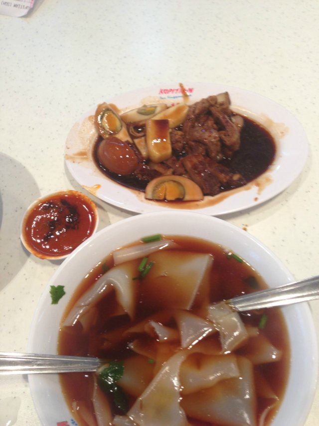 The FoodI ordered my favourite Kway Chap set served with big intestines, braised pork belly, braised egg and tau pok with a very pretty good decent dark sauce which is also used in their braised duck rice. The big intestines are soft, tender, chewy and simply taste awesome. Braised pork belly is tender and chewy absorbed with the soy sauce goodness and not so fatty. The Chilli also taste very nice and not so spicy. As for the Kway, is smooth and thin and easily glide down my throat without much chewing. The PriceReasonably priced at around $3.50 onwardsOverallI will definitely come back again and highly recommended to try this!…查看更多