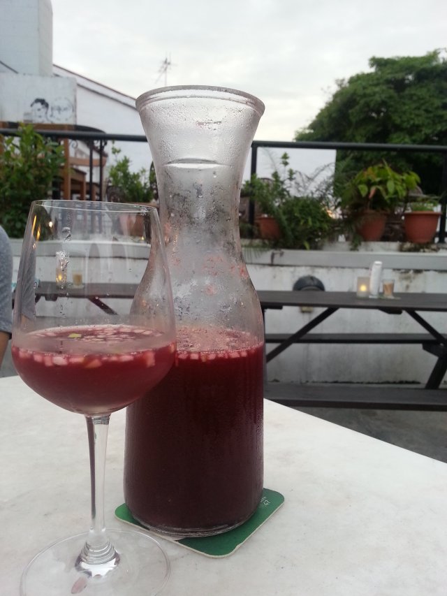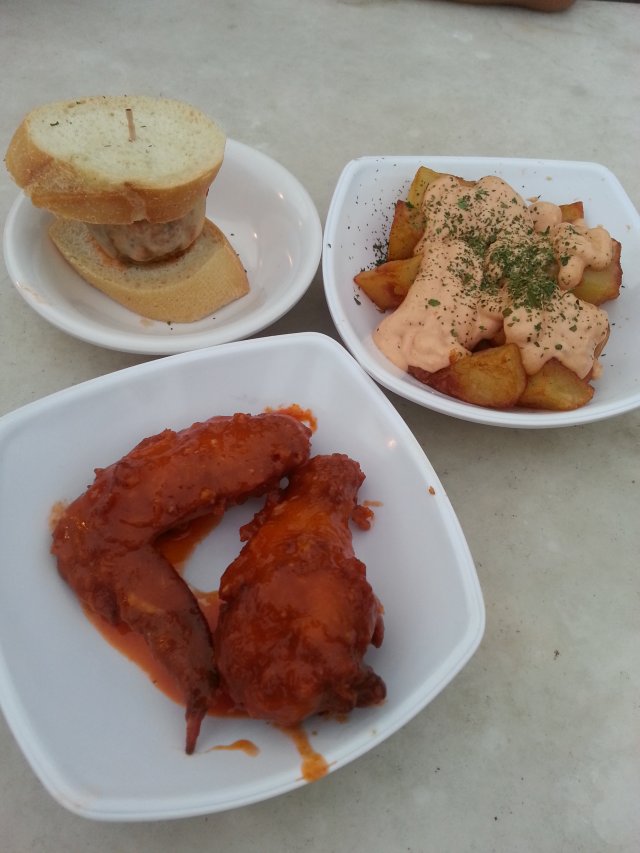 The rooftop bar here has a very relaxing ambience.I like to go there for red wine sangria. The drink is light and refreshing with fruit bits that you can munch to while drinking. For every jug you order, you get 3 plates of tapas to go with. I ordered their buffalo wings which was very spicy which was quite nice. Their patatas bavas, which is just seasoned potatoes was very tasty and flavourful. The third plate I chose was their mini burger, but it was not really a burger when served. The taste of it was just so so.The bread was tough and the beef patty was very small and not impressive at all. …查看更多