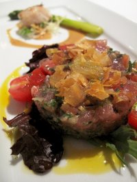 Dry-Aged Wagyu Beef Tartare on Crispy Chipotle Brioche with Caramelised Onion Ice Cream