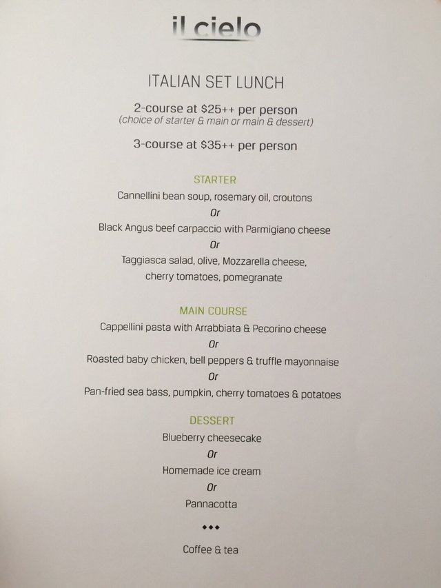 For weekday, the restaurant offered lunch set priced at S$25++ for 2 course and S$35++ for 3 course. I was showed to a table with a view of the swimming pool, plus a wooden stool to put my bag on. Looking the menu, I opted for the 2 course with a starter and a main course.
