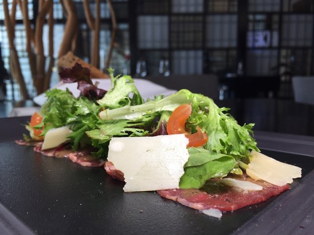 Black Angus beef carpaccio with Parmigiano Cheese