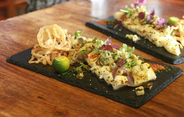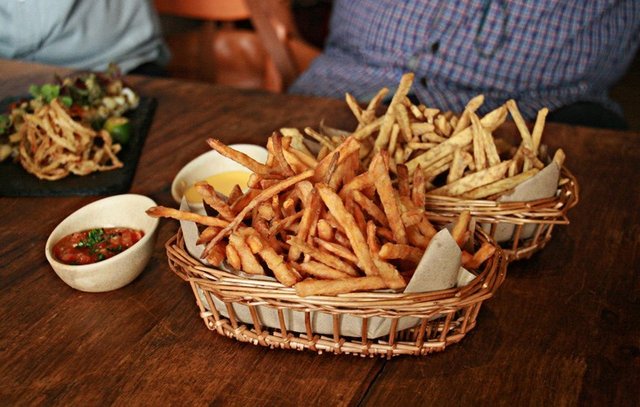 For sides, what have we got here? The Skillet-Roasted Escargots (SGD12), while the freshness and chewiness can't be compared to Parisian fare, are very value-for-money considering how many escargots there are in this tiny little pot. I kept fishing them out non-stop and they don't seem to end. The savoury sauce should be mopped up by the baguette slices on the side. With the invention of Yam and Sweet Potato fries (SGD8), truffle fries should officially go into retirement.. they're such a treat! The Grilled Squid (SGD12) was beautifully plated, with a whole row of tantalizing squid rings made especially tasty with the dash of lime, tumeric, garlic base and paprika powder. The portion makes it quite a steal - it seems like there isn't much when it was set, but there's plenty to go around.