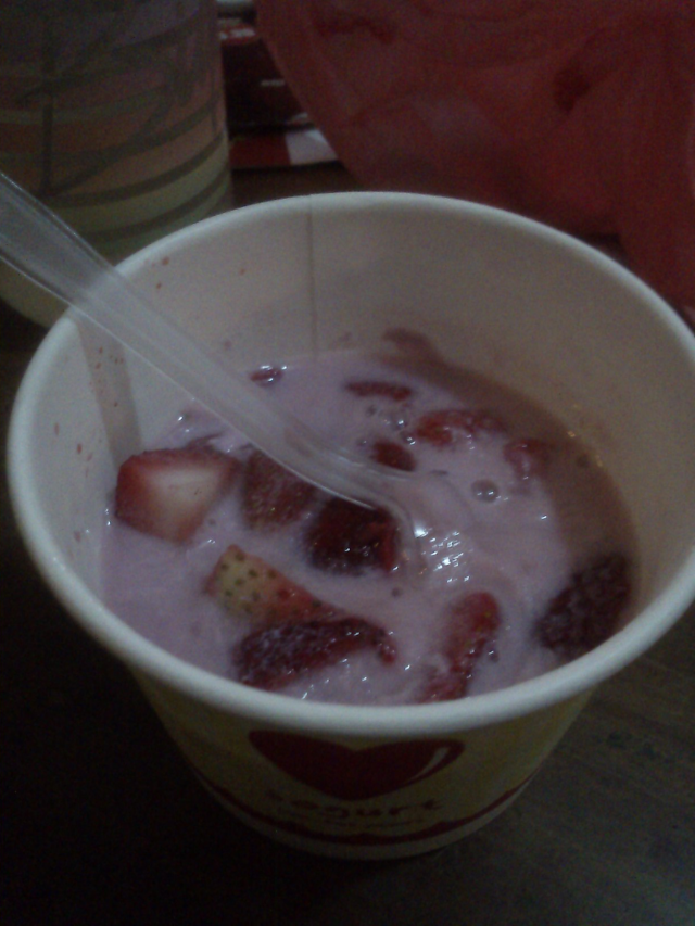 Furthermore, the strawberry they give is a lot. But, the strawberry will get a little frozen when it is left hidden in the yoghurt for too long.