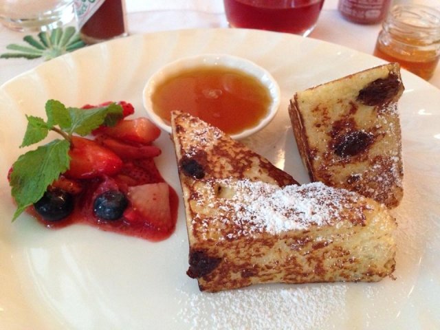 The toast set comes with bits of fresh strawberries and toasts topping of icing taste superb .