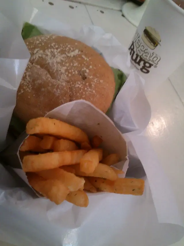 Vegan burg is a vegetarian restaurant. Their food is very healthy and you can hardly tell the difference. I had creamy mushroom burger. It is very nice, the cream sauce and the mushroom makes the burger juicy, tastes just like mushroom Swiss burger from KFC but this one is vegetarian. Ordering a set will have seaweed fries too! their seaweed fries is normal. The whole meal may look small but actually, the portion is very big... Somehow, I feel full after eating half of the burger.