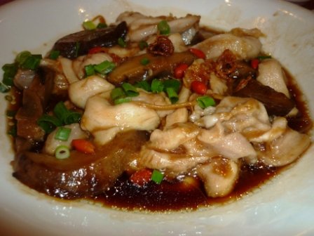 Steamed Chicken with Mushrooms served on Lotus Leaf