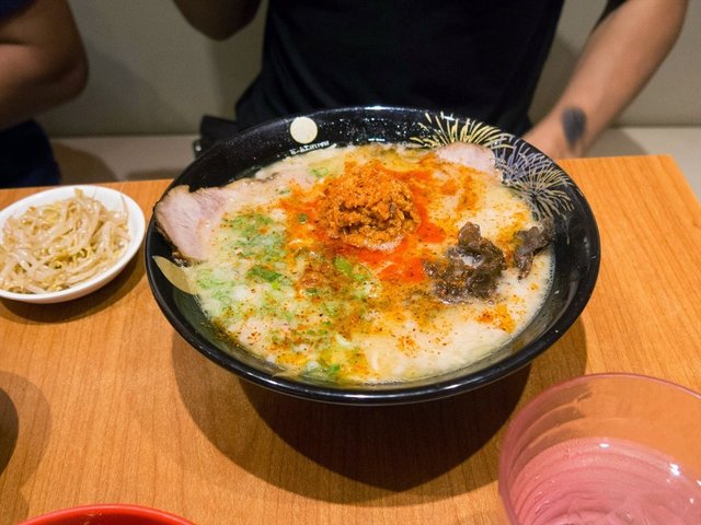 I had planned for a second trip since my first visit to Keisuke. It was hard to avoid this place since Bugis was along the way home after booking out. Having the book-out timing meet the opening hours was the difficult part. Haha it sounded like i have a say in the book-out timing, the truth is i have none! Nevertheless, i was lucky to book out right when they opened for the afternoon crowd!Located at one of the quaint shop houses along Rochor road. Tonkotsu King makes no attempt to hide it's presence. On a bright afternoon i couldn't help but notice light gleaming from afar. I realized that i was staring at the restaurant all along as the light reflected from the golden signboard placed beside the restaurant's door.Right when I opened the front door the smell of simmering tonkotsu broth engulfed me. The space was tightly packed with wooden furniture and sakuras were strung across the ceiling. There was a sense of liveliness coming from the patrons' murmuring. All these elements came together to produce a surreal feeling of dining in Japan's ramen restaurant.Besides the wonderful atmosphere, the ramen is the main highlight of this post. I am very impressed by the amount of attention the chefs payed to preparing the ramen, ensuring the correct timing and proper technique to produce the right texture and chew to the ramen.After preparing the ramen, the thick savory broth, which took many hours to prepare, were then scooped from the heated pot into the bowl of ramen.And right before serving the ramen, the chashu were sliced from a thick slab it that was seared till the skin have a burnt and crispy exterior. The chashu packs a strong unami punch on the initial bite and leaves a bitter sweet charred taste that complements the unami very well, which reminds me of eating the skins of bbq chicken wings. The ramen is not the only aspect that surpasses the common standard. Keisuke does away with selling appetizers and instead offer free eggs and marinated bean sprouts. For once i felt the service charge was truly well payed for. Overall i would say that Keisuke is one of the most affordable ramen restaurant in town that offers the best ramen and service. It is definitely a must try if you happen to be in Bugis.…查看更多