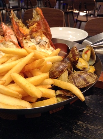 For the seafood lovers, you have to head to Fish&co for their seafood platters! Get all sort of seafood assortments in one whole platter to share among your friends! Here, I tried the Seafood Galore Platter at $22.95. This platter consists of two grilled King prawns, grilled White fish and Curry Butter Clams with chips and paella rice. The seafood are fresh and juicy and cooked just nice! Paella rice is fragrant with just enough spices! The chips are crispy. Recommended to share between two to three pax depending on your appetite! Service here is pretty good as the staff was attentive and take notes of special requests.…查看更多
