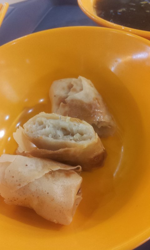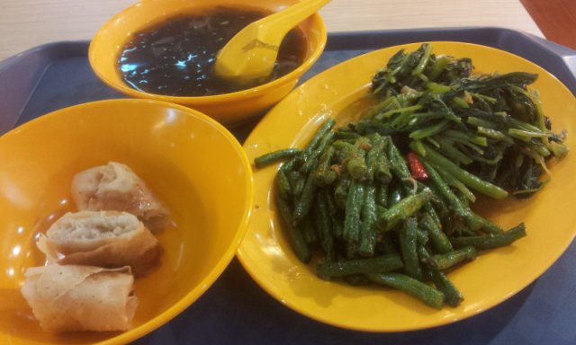I like to eat mixed rice as there is a wide variety of dishes to choose from. I ordered a healthy meal today - 2 vegetable sides and a spring roll. The stall owner gave me a complimentary vegetable soup as well. The portion of the sides is generous, the long bean is crunchy and not overcooked. As for the spring roll, it tasted not fresh or perhaps its fried earlier in the day and it was soft by the time i ordered it. Despite the negative experience with the spring roll, i will come by and try other dishes again.